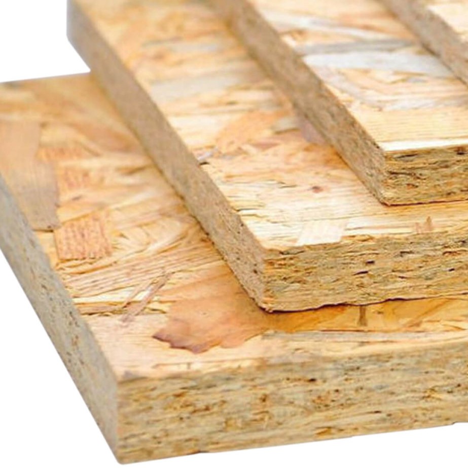 - ОСП (ориентированно-стружечная плита) изготавливается из крупной щепы и стружки. Элементы подвергаются высокотемпературному прессованию, связующим элементом служат формальдегидные смолы. Щепа может иметь длину 10 – 15 см. При этом она укладывается в два ряда так, что нижние ряды перекрывают верхние. По марке ОСП различается на четыре класса (OSB 1 - 4). В зависимости от этого отличается влагостойкость и прочность материала. OSB-1 из-за низкой влагостойкости может использоваться только для внутренних отделочных работ. OSB-4 и OSB-3 используются для возведения крыш, стен, перекрытий, особенно активно ОСП используются при строительстве каркасных домов. Соединение плит у некоторых конфигураций происходит с помощью системы паз-гребень.