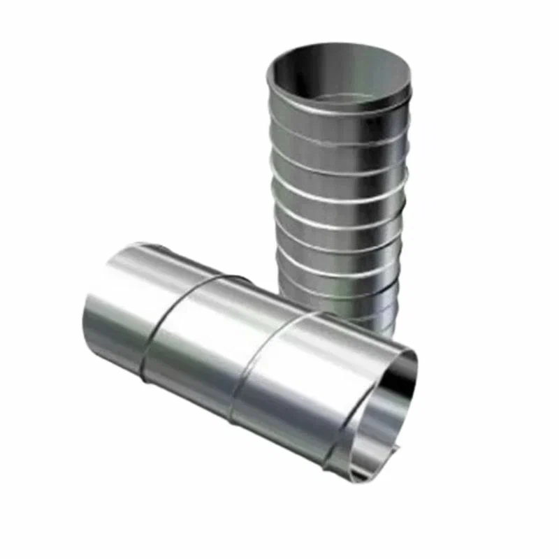 Воздуховоды с круглым сечением бывают спирально-навивные и прямошовные. Соединение частей магистрали и подключение фасонных элементов осуществляется с использованием ниппеля. Толщина металла стенки может составлять от 0,4 до 0,9 мм в зависимости от диаметра (100 – 1250 мм). Наиболее популярными в частных домах трубы диаметром 100, 125 и 160 мм, для более крупных объектов подойдут магистрали 200, 250, 315 и 400 мм.